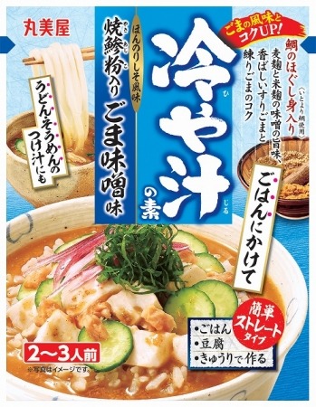 丸美屋食品工業株式会社(本社:東京都杉並区、社長:阿部豊太郎)では、マンネリ化しがちな夏の食卓の提案メニューとして「期間限定 冷や汁の素<焼鯵粉入りごま味噌味>」「期間限定 冷や汁の素<名古屋風赤味噌味>」「期間限定 冷や汁の素<豆乳ごま担々味>」を、2020年2月20日(木)から9月30日(水)までの期間限定で販売いたします。具材入りのストレートタイプなので、冷蔵庫で冷やし、豆腐ときゅうりをのせたごはんにかけるだけで簡単に冷や汁が作れます。