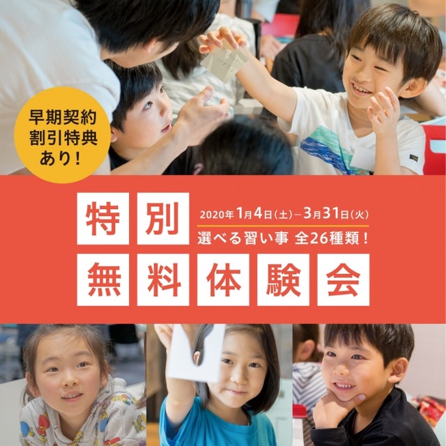 プログラミングやアートに加え、宇宙や哲学、映像制作が学べるクラスなど他にはない26種類の多彩な習い事が、対象期間中全て無料で体験いただけます。