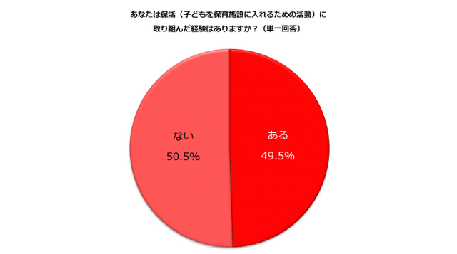 子どもを保育施設に入れるための活動は、省略して保活と呼ばれます。仕事と家庭の両立を希望する“働く主婦層”に保活の経験の有無を聞いたところ、半数弱があると回答しました。