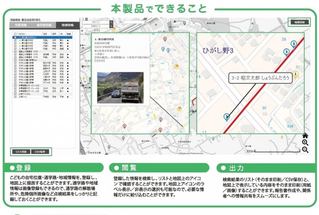 これらアンケートの結果を踏まえ、真に学校現場で役立つ「通学路安全支援」を実現すべく、本システムを開発いたしました。