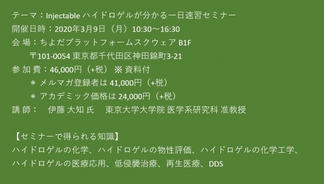 テーマ:Injectable ハイドロゲルが分かる一日速習セミナー