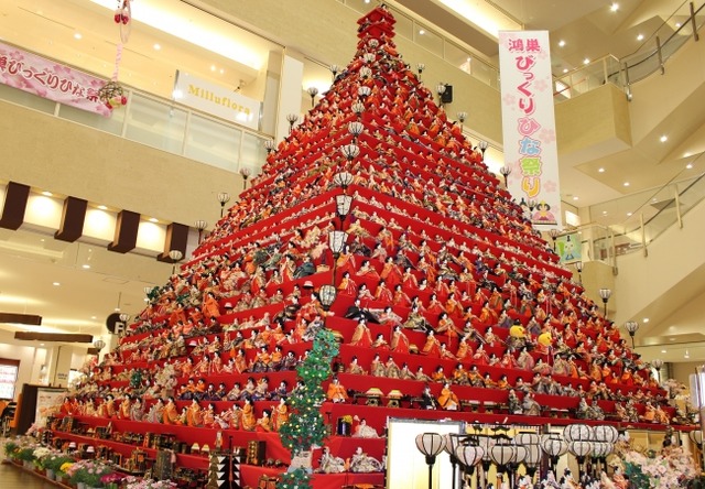 グンゼ株式会社(本社:大阪市北区、社長:廣地 厚)の連結子会社グンゼ開発株式会社(本社:兵庫県尼崎市、社長:赤瀬康宏)が運営する商業施設「エルミこうのすショッピングモール」(埼玉県鴻巣市)で、一般財団法人鴻巣市観光協会主催の「鴻巣びっくりひな祭り2020」が2月19日からスタートします。今年で16回目となる人気のイベントで、メイン会場でもある当施設には毎年45万人の方が来場します。会場には高さ7メートル、31段の“日本一高いピラミッドひな壇”が設置され、各地から寄せられた約1,800体の人形が並びます。