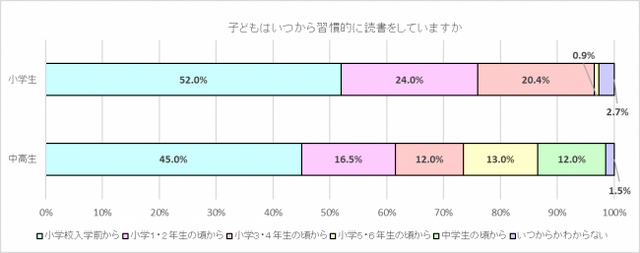 習慣的な読書は「小学校入学前から」 全体の約5割