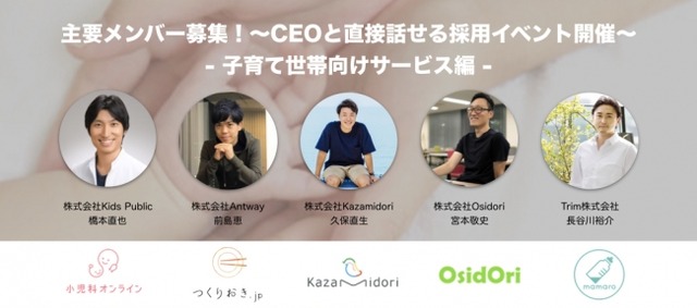 そんな子育て世帯の課題を解決したいという熱い思いを持 ったスタートアップ5社のCEOが集まりますので、是非 ご参加ください。