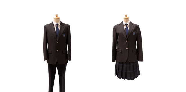 従来のセーラー服はシックで可憐なデザインで、生徒達に愛されていましたが,市内の中学校のセーラー服と類似していたため変えました。新制服は、男女とも奇をてらわず、オーソドックスなデザインで、ネクタイに若干のアクセントがあります。気高く(ノーブル)、上品で(エレガント)、永く愛され、受け継がれる制服になるであろうと思います。