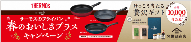 魔法びんのグローバル企業として、人と社会に快適で環境にもやさしいライフスタイルを提案するサーモス株式会社(本社:東京都港区 社長:中條啓一郎)は、『サーモスのフライパン 春のおいしさプラスキャンペーン』(キャンペーン応募期間3月31日(火)まで ※当日消印有効)を全国の販売店で実施中です。