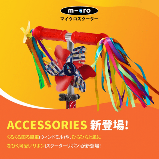 マイクロスクータージャパン(本社:東京都港区、 代表取締役:杉崎正義)は、スクーターを自分好みでカスタマイズできる『スクーターリボン』やマイクロオリジナルデザインの『ウィンドミル』を販売開始致しました。