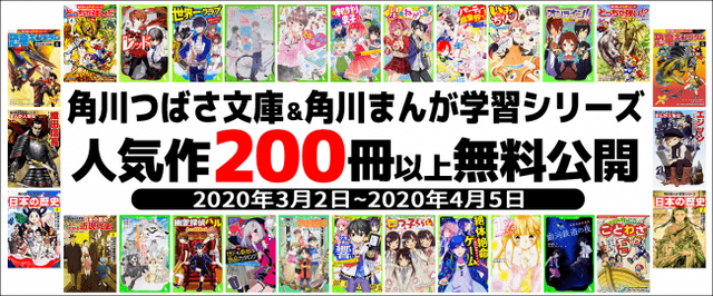 シリーズ刊行10巻以上の人気作『怪盗レッド』『五年霊組こわいもの係』をはじめとしたKADOKAWAの「角川つばさ文庫」作品に加え、小学生に絶大な人気を誇る『どっちが強い!?』シリーズ、「学習まんが 日本の歴史」ジャンル4年連続売上No.1『日本の歴史』などの角川まんが学習シリーズ 等、計207冊を全ページ無料で、2020年4月5日までお読みいただくことができます。