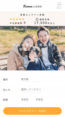 ※フォトグラファーへの予約申込はFamm出張撮影への会員登録が必要となります