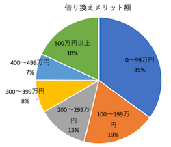 65%のユーザーは借り換えメリットが100万円以上ありました。また、毎月の返済額が5,000円以上、下がる人も半数以上存在することがわかりました(※1)。
