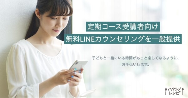 「ハクシノレシピ」では、定期コースの受講者は専属カウンセラーによるカウンセリングをいつでも無料で受けていただけます。