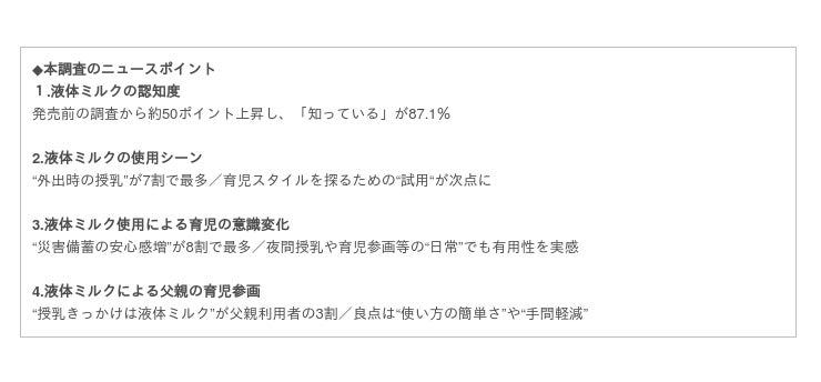~ “液体ミルクが授乳きっかけ”が父親利用者の3割/良点は“使い方の簡単さ”や“手間軽減” ~
