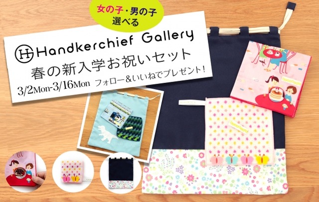 繊維製品企画販売のブルーミング中西株式会社(本社 東京都中央区 取締役社長 中西一)は、2020年3月2日(月)~2020年3月16日(月)の期間、運営するオンラインショップ「Handkerchief Gallery(ハンカチーフギャラリー)」で、新入学をテーマにInstagramプレゼントキャンペーンを実施いたします。