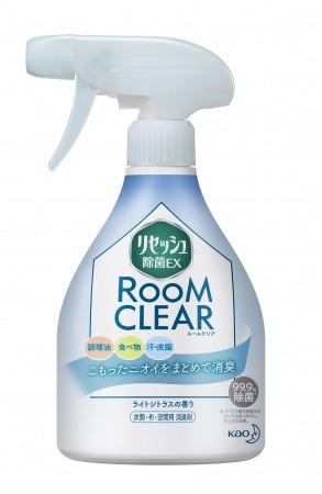 このたび新発売の『リセッシュ除菌EX ROOM CLEAR(ルームクリア)』は、お部屋にこもりやすい調理油臭や食べ物臭、洗いにくい布製品についたニオイに特化した消臭スプレーです。ワンルームやLDKタイプなど、キッチンとリビングが同空間にあるお部屋の気になるニオイ悩みにも対応する新しい提案です。花王独自の「ハーモセント技術」を採用し、香りでごまかすことなく、お部屋にこもった調理後や食事後の油っぽいニオイまで強力消臭します。
