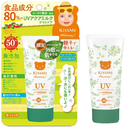 食品成分※3にこだわってつくったスキン&ボディケアシリーズ「マミー」の人気UVシリーズから、アウトドアの外敵※2から肌を守り、アウトドアシーンで活躍する無添加※4UVミルクを数量限定で発売します。高SPF値で強力紫外線を長時間カットし、ユーカリの葉由来の成分などが肌を保湿します。80%食品成分※3でできた肌にやさしい使い心地で、親子で一緒にお使いいただけます。汗・水に強いウォータープルーフタイプなのに、せっけんで簡単に落とすことができレジャーにもピッタリです。