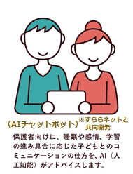 「頭がよくなる家」開発においてすららネットは、学習教材として「すらら」を提供すると同時に、最新の心理学に基づき、子どもの学習状況に応じて学習意欲や自主性をさらに高めるための的確なアドバイスを保護者に向けて提供できるAIチャットボットをケイアイスター不動産と共同開発し「頭が良くなる家」に装備します。AIチャットボットの開発においてすららネットは、これまで(1)AI×アダプティブラーニング「すらら」の提供(2)学習者の保護者向けにサポートを行ってきた「すららコーチ」のサービス提供(3)学習指導の困りごとを解消し、保護者の方々が子どもとの関わり方を学びながら楽しく子育てができるよう支援する”勉強”におけるペアレントトレーニング といったさまざまなサービスの提供により培った経験、知見を総動員し、学習に関し保護者が正しく子どもに関与することを促します。