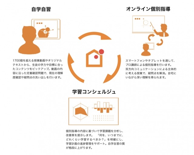 本プログラムでは、オンライン上で学習に関するヒアリングを受けてもらい、学習プランニングに基づいて動画授業から必要なコンテンツを視聴し、独自開発した様々なシートを用いながら定期的に学習支援を受けることができます