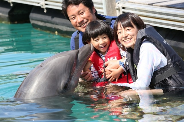 目の前に広がるプライベートビーチで楽しめるマリンメニューやプール、施設内に暮らすイルカやエイ、カメなどの生き物とふれあえるプログラムは、小さなお子様も大喜び。