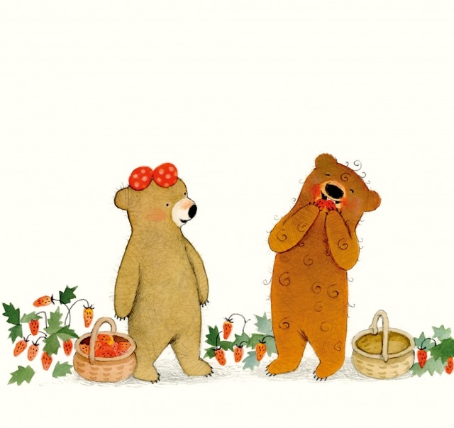 ピノピノはいちごやラズベリーなど、ベリー類が大好き。ある日、相棒のくまの女の子ルゥと森でベリーをさがしていたとき、こぐまのバルバウと出会います(からだが大きくて、まるでジャイ〇ンみたいな存在の男の子です)。