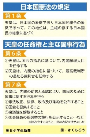 ・日本国憲法での天皇の国事行為に関して出題。(神奈川・慶応普通部、京都・京都女子中)