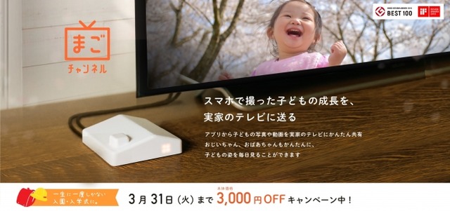 株式会社チカク(以下、チカク)は、入園や入学式など新生活応援キャンペーンとして、スマホで撮影した動画を実家のテレビに届ける事ができる「まごチャンネル」を、本体価格を3,000円引きしたキャンペーンを3月16日(月)より3月31日(火)まで実施いたします。