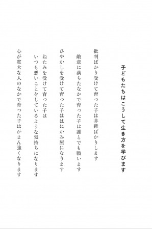 心が寛大な人のなかで育った子はがまん強くなります