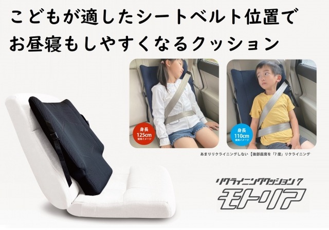 ・こどもが適したシートベルト位置で、くつろぎやすくするクッション「モトリア」って?
