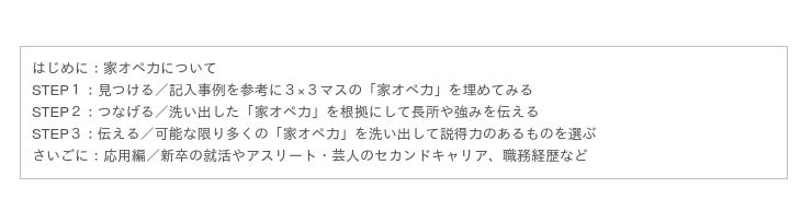 「家オペ力」の手法は、新卒学生の就活、アスリートや芸人などとして活躍された方々の