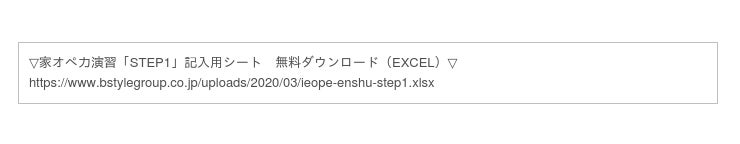 では、以下より家オペ力演習「STEP1」記入用シートをダウンロードして、