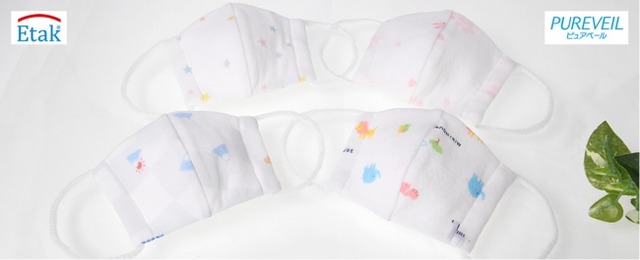 2020年4月6日より、クラボウ(倉敷紡績株式会社)と共同開発した抗菌・抗ウイルスをほどこした「ピュアベール加工」生地を使用した子ども用マスクを発売いたします。