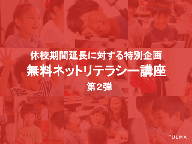 3月に実施した無料ネットリテラシー講座には100名以上の方々にご参加いただきました。先日発表された小学校の休校期間延期を受けて、第2弾の無料ネットリテラシー講座を開催します。自宅にいる時間が長くなる休校期間、ゲームやインターネット、YouTubeを見る時間が増えています。フルマではそんな子どもたちに対して、ネットの使用を禁止するのではなく「正しく・安全に」インターネットやYouTubeを楽しんで欲しいと考えています。