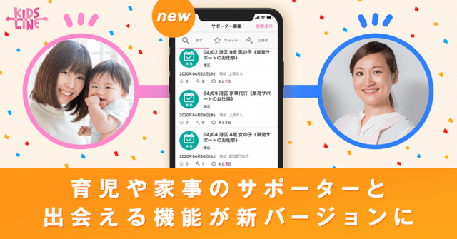 キッズラインでは、こうしたサポート依頼の増加と働き手の応募増加を受けて、両者のマッチングをさらに強化すべく、「サポーター募集」(※2)の機能向上を行いました。