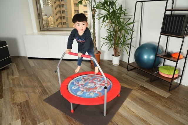 安全に楽しんでいただけるよう、取り外し可能なハンドル付き。ハンドルを握って飛ぶ事により、着地が安定し安全に楽しくご使用いただけます。ハンドルの高さは82cm、92cm、102cmの3段階。