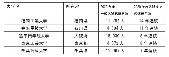 また、一般入試だけをみても18,030人と前年を2,232人上回り、教育情報会社の大学通信のまとめによりますと総志願者と同じく8年連続で志願者が増加しました。