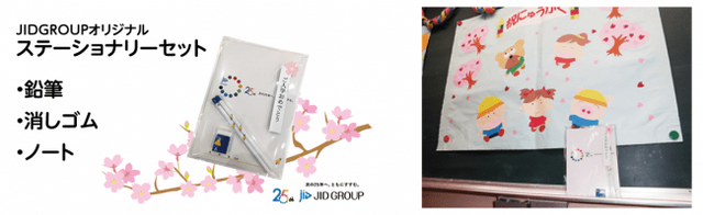 今年も本社所在地(木更津市羽鳥野)学区内の小学校へ入学する児童の皆様へ、ご入学のお祝いとしてささやかではございますが、ステーショナリーセット(JIDオリジナルキャラクター入り)180部を寄贈いたしました。