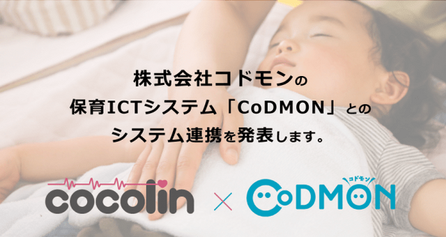 園児見守りソリューション「cocolin(ココリン)」を提供する株式会社キムラタン(本社:兵庫県神戸市、代表取締役:清川浩志 以下、当社)と、保育園向けICT業務支援システムでトップシェアの「CoDMON(コドモン)」を提供する株式会社コドモン(本社:東京都港区、代表取締役:小池義則 )は、この度システム連携することに合意いたしましたのでお知らせいたします。