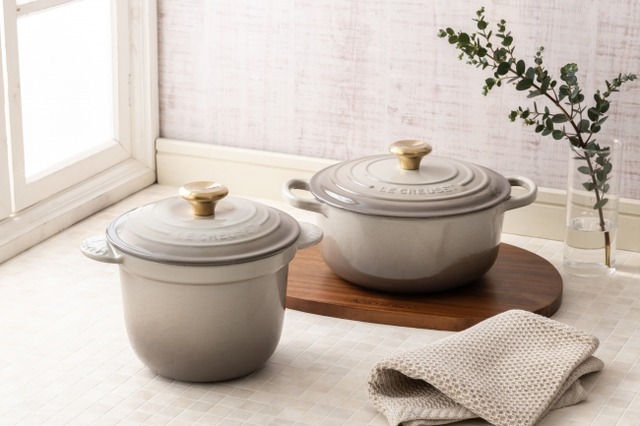 その「ナツメグ」から2つのラインナップの鋳物ホーローウェアが登場します。炊飯やスープ作りまで、日本人のライフスタイルを研究し尽くして生まれた「ココット・エブリィ」、使いやすさと機能性に定評のある「シグニチャー ココット・ロンド」。今回登場したナツメグの色合いは食材の色を引き立て、洋風はもちろん和風のテーブルコーディネートにもしっくりとなじみ、料理を美しく引き立てます。