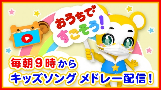 1日の始まりの朝から楽しくすごせるように、ご家族で一緒になって歌える「おもちゃのチャチャチャ」などの童謡や、「やさいのうた」などの手遊び曲などキッズソングをメドレー形式で配信します。お子様とおうち時間を楽しく過ごすきっかけにしていただけると幸いです。
