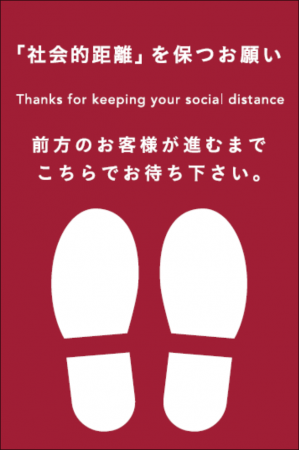 ・レジ待ちの列、もしくは接客カウンターについても同様に十分な距離を取るよう誘導させて頂きます。