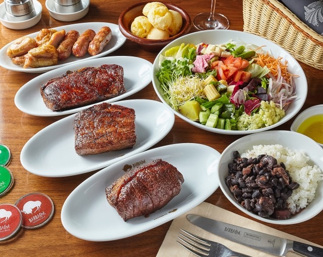 ピッカーニャ(イチボ)250g、アルカトラ(ランプ)250g、サーロイン300g、ソーセージ3本、チキン3つなどのシュラスコに加え、サラダ、フェイジョアーダ、ポンジケージョをお楽しみいただけます。「バルバッコア」の人気アイテムがぎっしり詰まったおすすめプランです。