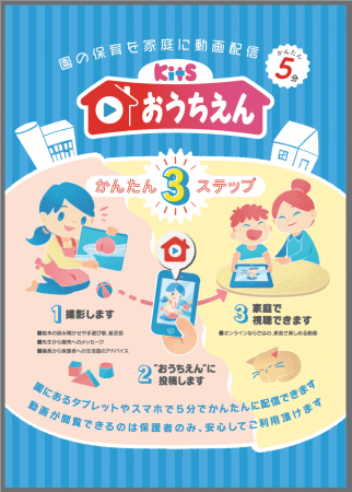 登園できずにいる園児たちを心配する全国の幼稚園、保育園の先生方からの要望を受け、この度、園の先生方が作る保育動画を、園児たちに手軽にクローズドな環境で配信できるシステムを提供することとなりました。園の先生方は、読み聞かせや手遊び等の動画をスマホ等で撮影して、そのままアップロードするだけで、配信が可能となります。園児は、別途連絡されたURL、パスワードを利用することで、普段の園での活動と同様、先生とのコミュニケーションを楽しむことができます。