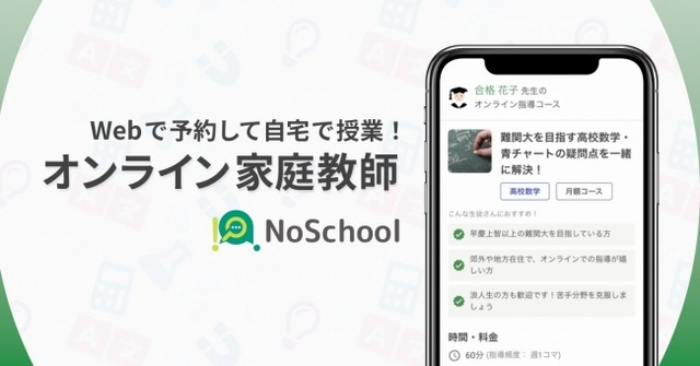 また、1科目・1分野から受講が可能なため、苦手科目の克服やテスト前や受験対策など、幅広い用途にご利用いただけます。(サービスURL: https://noschool.asia )