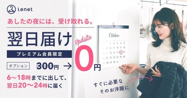 株式会社ホワイトプラス(本社 東京都品川区、代表取締役社長 井下孝之、以下「当社」)が運営するネット完結型クリーニング『Lenet(以下、リネット)』は、2020年4月20日(月)より、プレミアム便「翌日届け」の配送サービスにおいて、これまで300円(税抜)だったオプション料金を無料化したことをお知らせします。