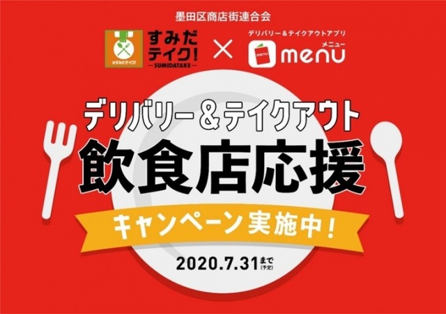 本事業連携協定は、新型コロナウイルスの感染拡大により外出自粛が続く中、テイクアウトやデリバリーの対応ニーズの高まりに応え、 2020年4月20日(月)から7月31日(金)※1までの期間、墨田区の飲食店や飲食店の従事者、住民の方々に墨田区商店街連合会とmenu共同で、テイクアウト・デリバリーに関する支援策を複数実施していくものです。