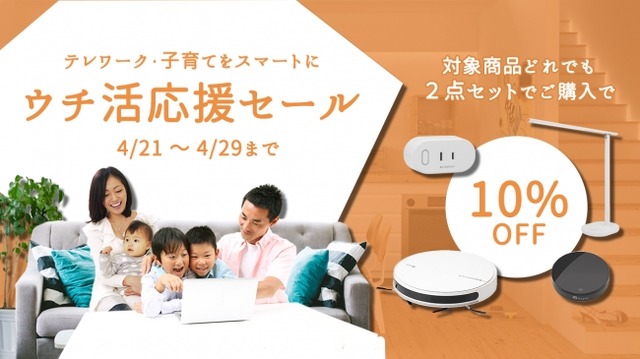 プラススタイル株式会社(本社:東京都港区、取締役社長:近藤 正充)は、+Styleのスマートホーム商品を中心とした13商品が最大59%OFFとなる「+Style ウチ活応援セール」(https://plusstyle.jp/special/item?id=10)を、2020年4月21日~4月29日の期間に開催します。
