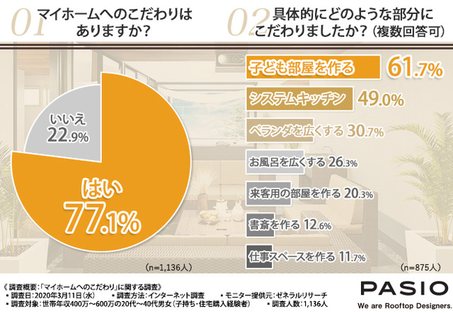 株式会社PASIO(本社所在地:神戸市中央区、代表取締役:岡崎 富夢)は、世帯年収400万円~600万円の20代~40代男女の子持ちで住宅購入経験者を対象に「マイホームへのこだわり」に関する調査を実施しました。