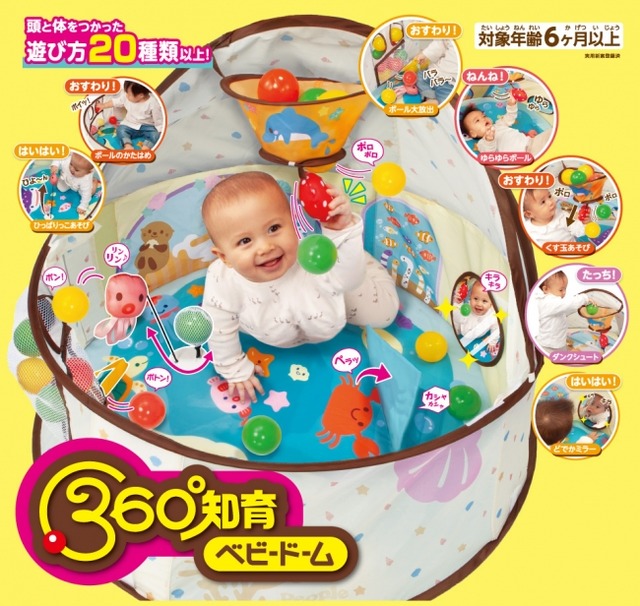 寝返りやハイハイ等、赤ちゃんが自分で動き始めるタイミングのお母さんたちは、「じっとしていてほしいけど、そろそろ知育や体を使った遊びもさせたい・・・」という共通のお悩みを持っています。そんな方たちに向けた、新商品が「360°知育ベビードーム」です。