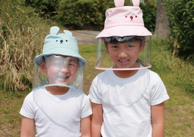 帽子をさっとかぶるだけで、マスクが苦手なお子様でも、簡単に飛沫対策ができます!