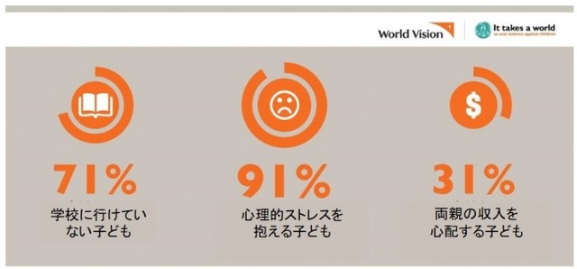調査対象の子どもたちのうち91%が心理的ストレスを感じ、困難な体験をしている