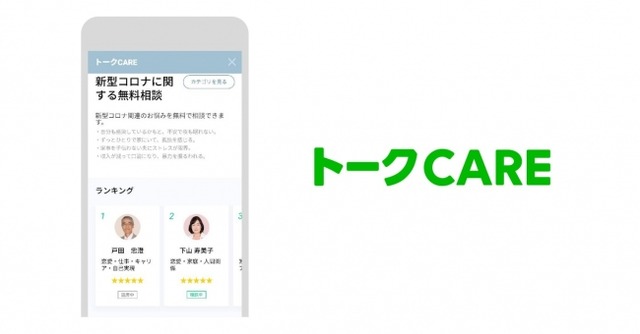 LINE株式会社(本社:東京都新宿区、代表取締役社長:出澤 剛)は、当社が運営するLINEで様々なジャンルの専門家に悩みを相談できるLINEお悩み相談「トークCARE」において、新型コロナウイルス感染症の流行に伴い増加する外出自粛における在宅ストレスや不安を軽減するため、専門家とLINEで無料相談できる「新型コロナに関する無料相談」を開始いたしましたので、お知らせいたします。